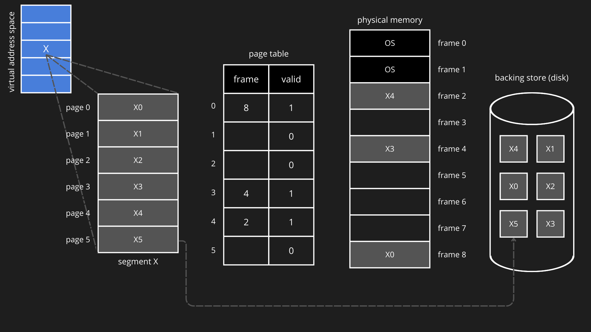 - Se la memoria fisica è piena, è necessario selezionare una pagina vittima da rimuovere, tramite un algoritmo di rimpiazzo delle pagine.
