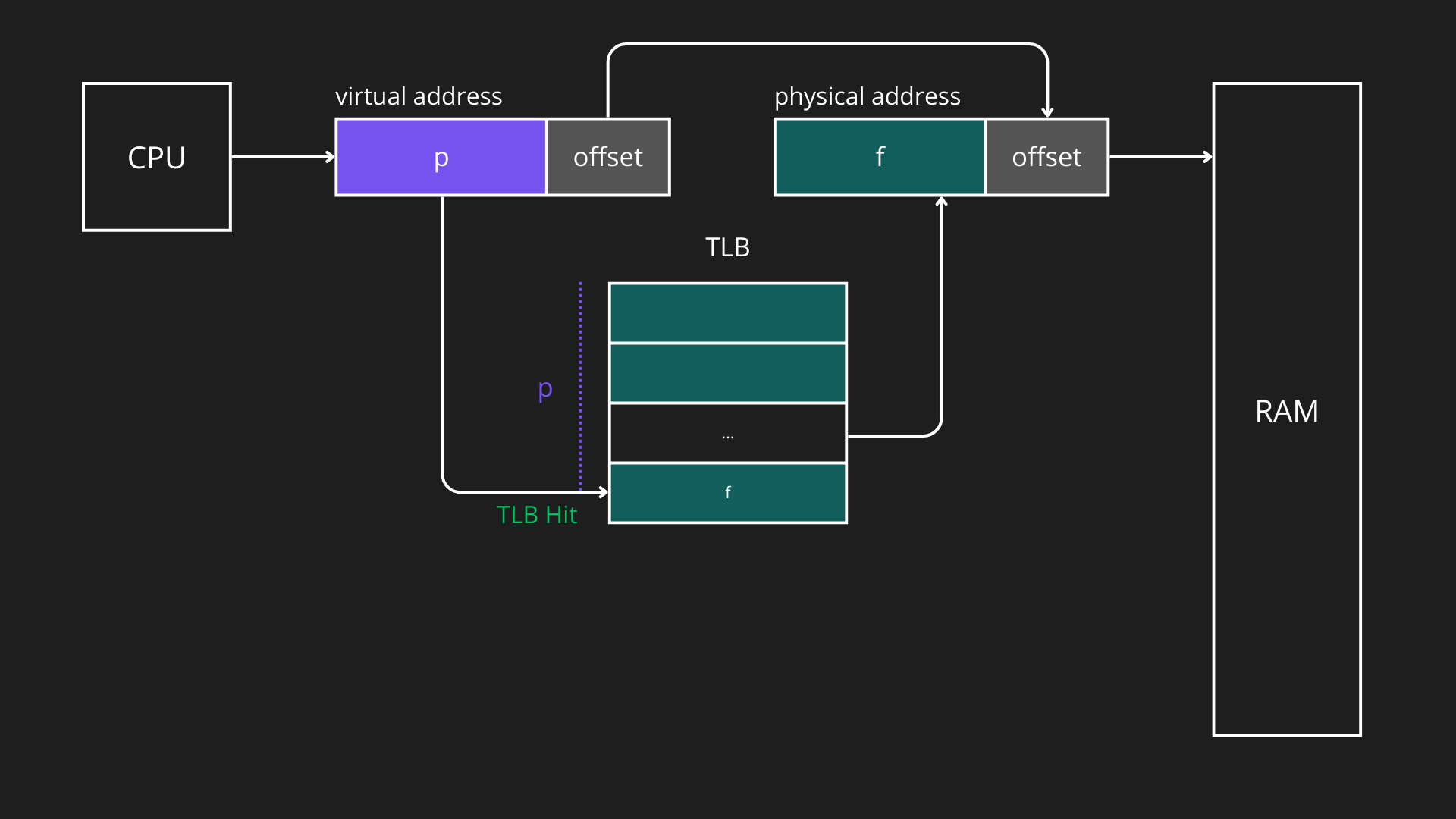 - TLB hit: il frame fisico corrispondente viene restituito immediatamente.