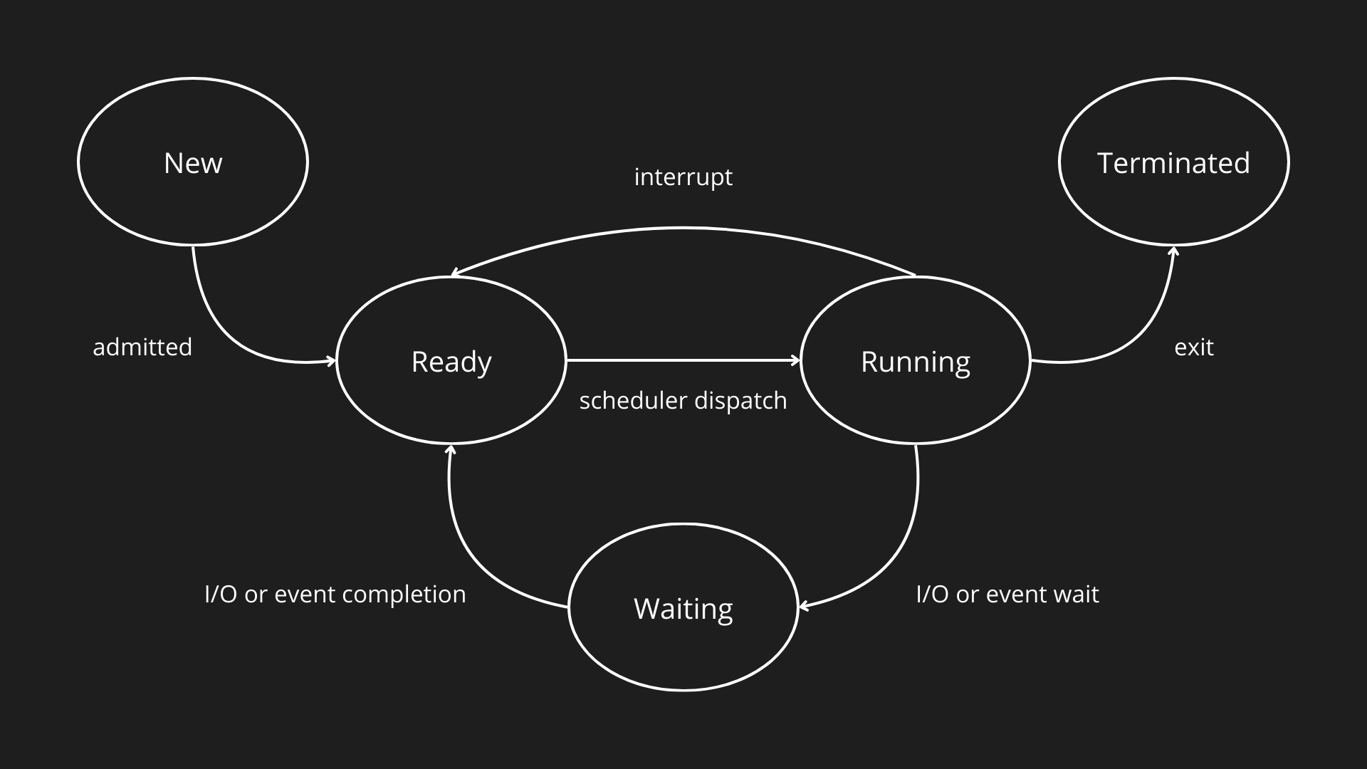 - Terminated: Il processo ha completato l’esecuzione e l’OS può eliminarlo.